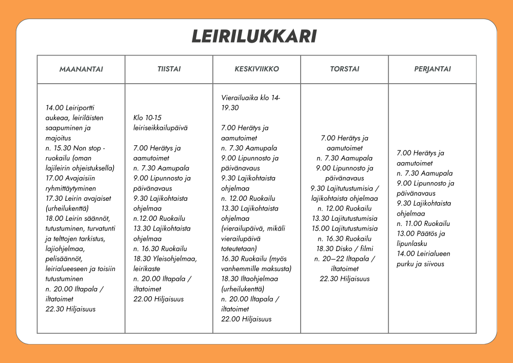 Suomen suurin monipuolisen liikunnan telttaleiri tarjoaa yli 40 eri lajivaihtoehtoa, uusia ystäviä ja ikimuistoisia elämyksiä luonnon keskellä Kokemäen Pitkäjärvellä! Seuraava Pitkis-Sport liikuntaleiri järjestetään 29.6.-3.7.2026.